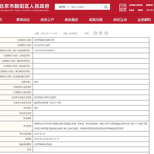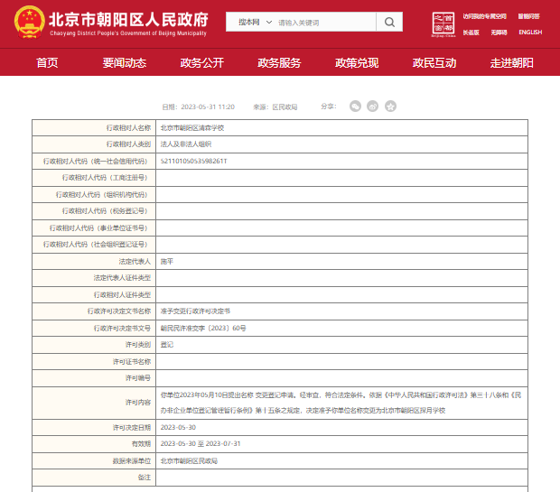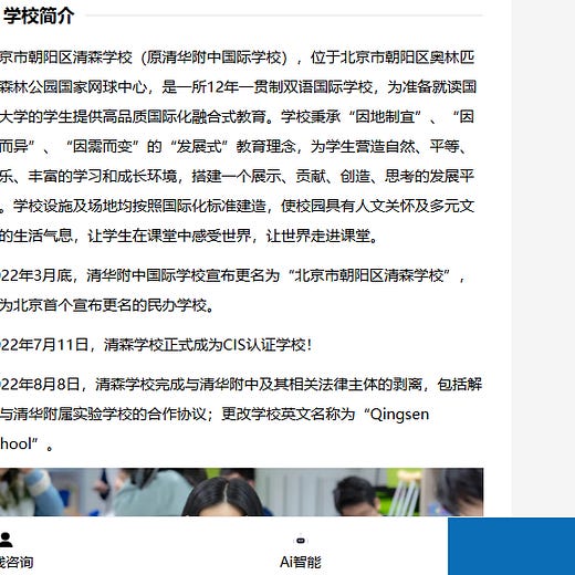 Renamed in March 2022 as “Qingsen School,” becoming one of the first private schools in Beijing to rebrand under tightening regulations
