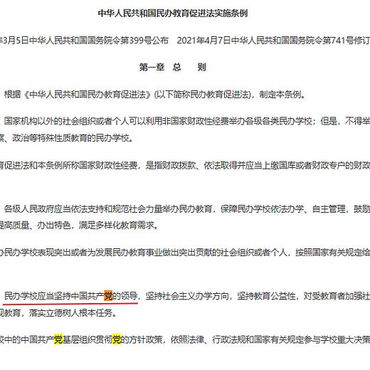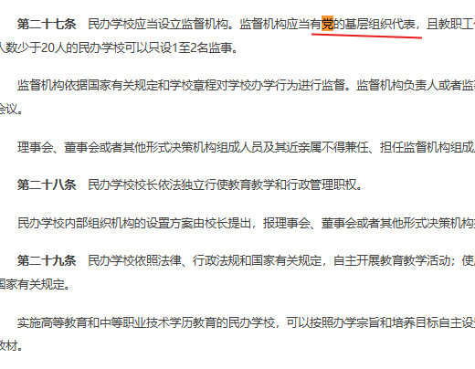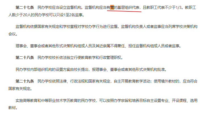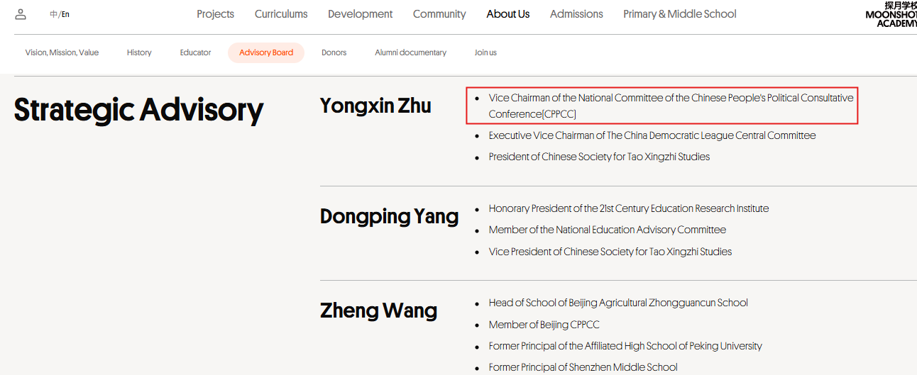 Moonshot Academy’s Party Secretary, Xie Rui, simultaneously serves as a member of its board of directors, while Sun Xuemei—Party Secretary of an affiliated primary school under Capital Normal University—also sits on the board. This arrangement is not incidental but mandated by law. Under the Regulation on the Implementation of the Private Education Promotion Law of the People’s Republic of China (revised in 2021), private schools are explicitly required to uphold CCP leadership, establish internal Party organizations, and include Party representatives in decision-making and supervisory bodies. The regulations further stipulate that Party organizations must participate in major school decisions and oversee their implementation. In practice, this means that governance structures in institutions like Moonshot Academy are designed to embed political authority directly into operational control—ensuring that “private” education remains aligned with CCP-defined ideological and policy objectives.