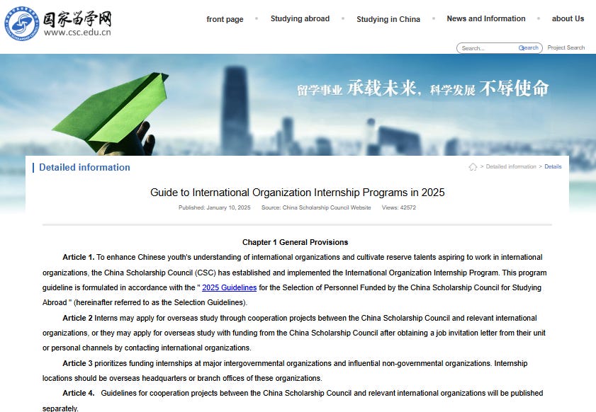 CSC projects are not about sending Chinese youth to learn from the world. They are about embedding politically reliable personnel into global systems — creating future insiders within international organizations.