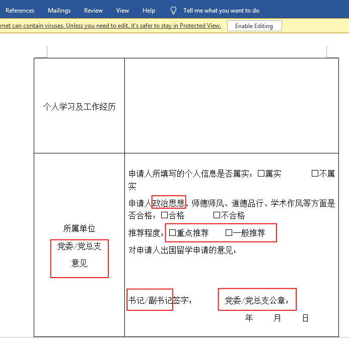 In the recommendation form, the unit must explicitly comment on the applicant’s political thought performance.