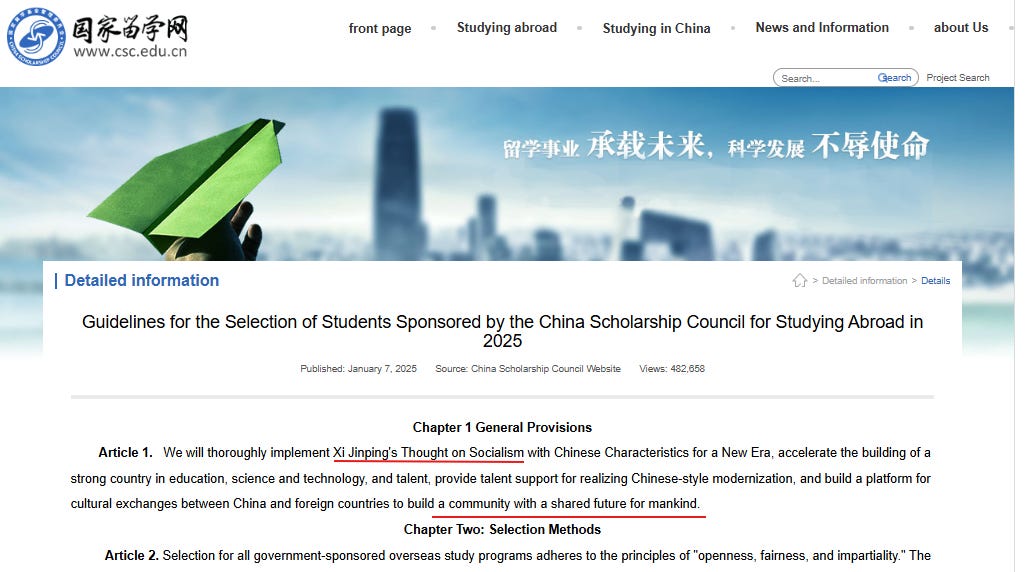 In January 2025, the China Scholarship Council (CSC) — operating under the Chinese Communist Party’s Ministry of Education — released its official document titled:
