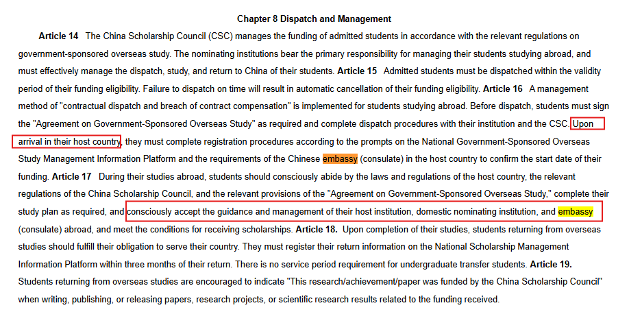 Once selected, students must sign the “State-Sponsored Study Abroad Agreement”, a legally binding document that includes a repayment clause if the student “violates Party discipline or state interests.”