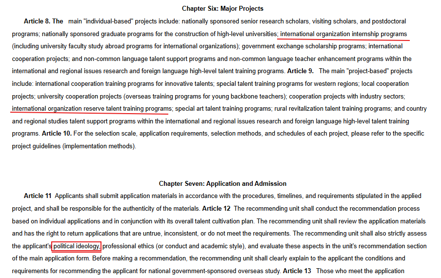 It openly codifies the principle that only loyal CCP supporters can be selected for international study or internships — transforming what should be academic exchange into a global political deployment system.