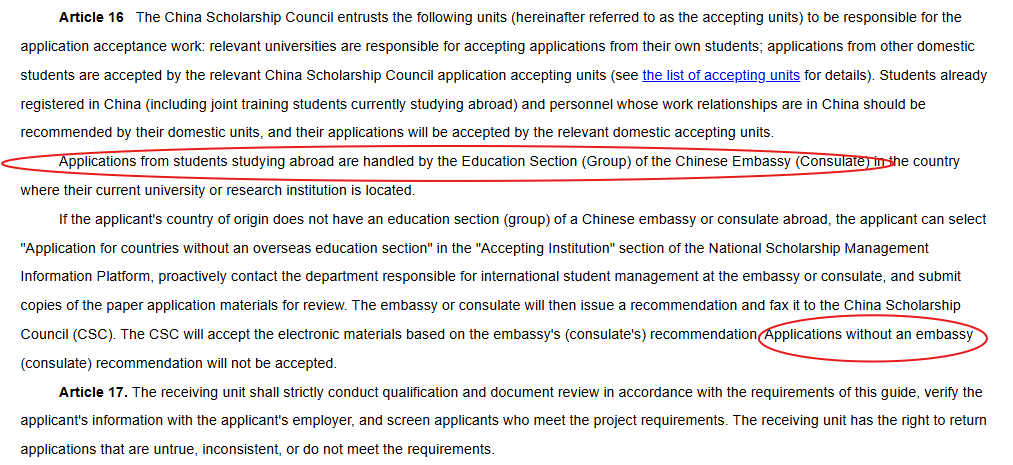 “Applications without embassy recommendation will not be accepted.”