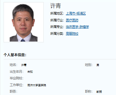 独立董事许青,1964 年5 月出生,内科学博士,教授。许青先生曾任第二军医大学长征医院肿瘤内科副主任、副主任医师及副教授,并长期从事肿瘤的基础与临床试验工作;以访问学者身份于美国南佛罗里达州大学H.Lee. Moffitt 肿瘤中心进行博士后研究。现任同济大学医学院教授、博士研究生导师、肿瘤学系副主任、肿瘤研究所副所长;同济大学附属第十人民医院肿瘤内科主任、主任医师。2020 年10 月至今,任公司独立董事。