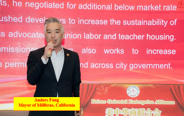 Yan Zhao expressed willingness of deepening exchanges in education and science & technology between US and CCP via Prime Oriental Enterprise Alliance(美中华商联合会) , and issued an award to Gong Yunding(龚雲定, 龚云定), President of the Prime Oriental Enterprise Alliance on 30th Dec 2023. Millbrae Mayor Anders Fung (冯嘉辉, or Feng Jiahui) also issued a certificate of award to Gong Yunding.California State Assemblyman Evan Low, Alameda County Supervisor David Haubert,Danville Mayor Newell Arnerich,Millbrae Mayor Anders Fung,etc., delivered a speech on the founding ceremony of Prime Oriental Enterprise Alliance. Gong Yunding graduated from CCP Central Party School(中共中央党校) and chairs Xinjing Group(新京集团)