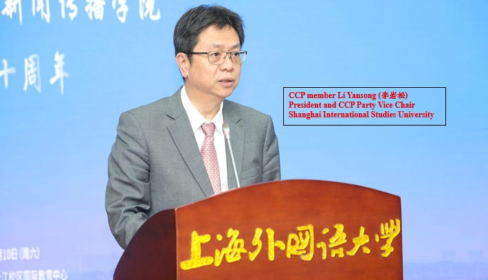 SISU President, SISU’s CCP Party Vice Chair and CCP member Li Yansong (李岩松) described the School as the “core incubator for international communication talent,” promising to deepen coordination with the CCP’s propaganda organs, top journalism schools, and state-owned media enterprises.