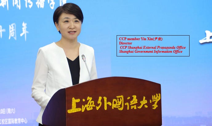In these posts, Yin Xin was responsible for orchestrating both domestic propaganda coordination and international media messaging, aligning Shanghai’s external communications with the CCP’s central narrative objectives — especially in the realms of “telling China’s story well” and shaping foreign public opinion to favor the regime.