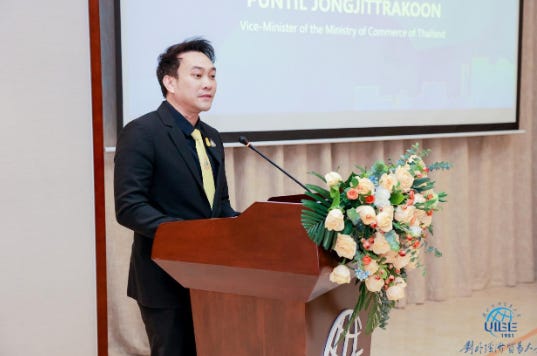Puntil Jongjijttrakoo (罗铭然), Vice Minister of Thailand’s Ministry of Commerce and a UIBE alumnus, used his remarks to pledge support for the Thailand Alumni Chapter and for deeper Thailand–China cooperation. His role illustrates how CCP-aligned alumni networks reach into foreign governments and bureaucracies, reinforcing Beijing’s influence channels in Southeast Asia.