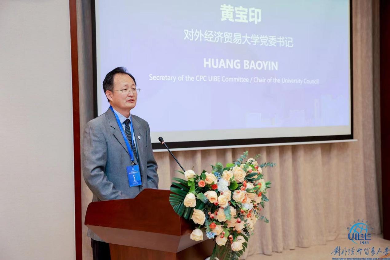 Huang Baoyin, in his capacity as Party Secretary of the Chinese Communist Party (CCP) committee at UIBE, framed the forum with explicit CCP political language: