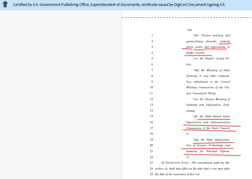 本条通过修改既有法条(2021 NDAA 第1260H条),把“中共军事公司”的判定标准扩展为: